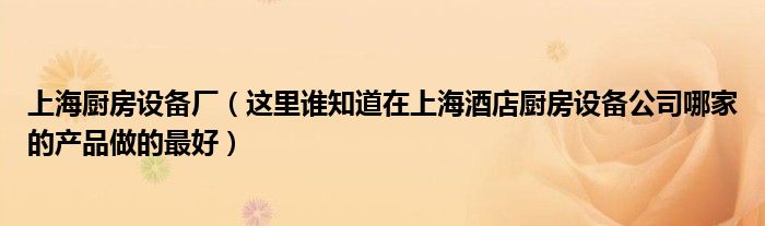 上海厨房设备厂(这里谁知道在上海酒店厨房设备公司哪家的产品做的最好)