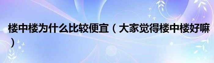 楼中楼为什么比较便宜(大家觉得楼中楼好嘛)