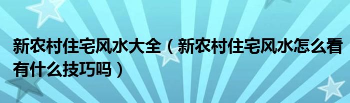 新农村住宅风水大全(新农村住宅风水怎么看有什么技巧吗)