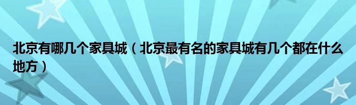 北京有哪几个家具城(北京最有名的家具城有几个都在什么地方)