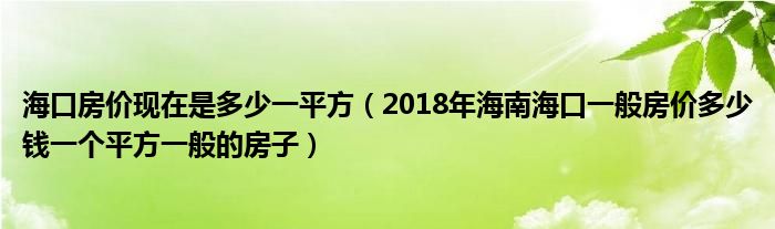 导读 大家好,小编慧慧来为大家解答以上的问题。海口房价现在是多少一平方,2018年海南海口一般房价多少钱一个平方一般的房子很多人还不知道,现