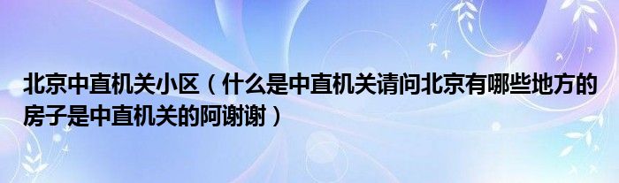 北京中直机关小区(什么是中直机关请问北京有哪些地方的房子是中直机关的阿谢谢)