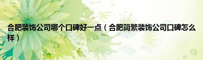 导读 大家好,小编慧慧来为大家解答以上的问题。合肥装饰公司哪个口碑好一点,合肥简繁装饰公司口碑怎么样很多人还不知道,现在让我们一起来看看