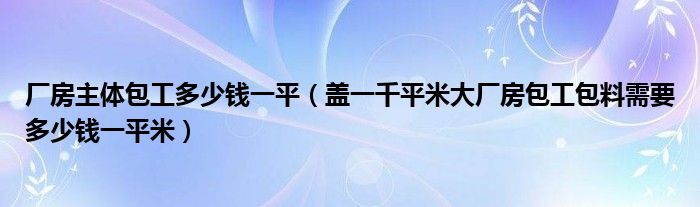 导读 大家好,小编慧慧来为大家解答以上的问题。厂房主体包工多少钱一平,盖一千平米大厂房包工包料需要多少钱一平米很多人还不知道,现在让我们