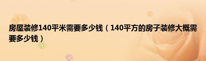 房屋装修140平米需要多少钱(140平方的房子装修大概需要多少钱)