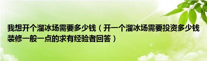 我想开个溜冰场需要多少钱(开一个溜冰场需要投资多少钱装修一般一点的求有经验者回答)