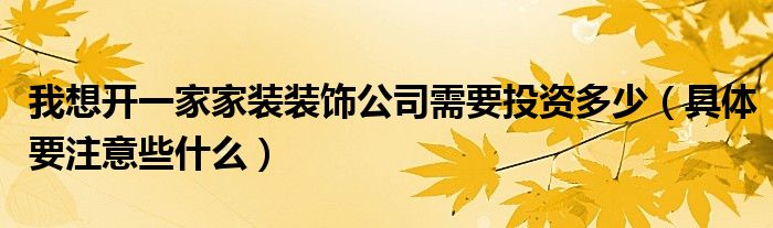 我想开一家家装装饰公司需要投资多少(具体要注意些什么)