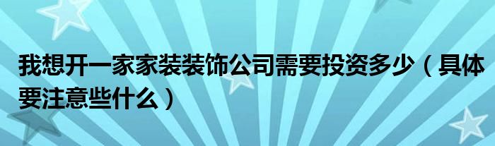 导读 大家好,小编慧慧来为大家解答以上的问题。我想开一家家装装饰公司需要投资多少,具体要注意些什么很多人还不知道,现在让我们一起来看看吧