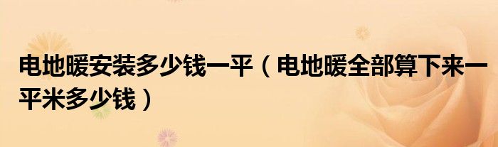 电地暖安装多少钱一平(电地暖全部算下来一平米多少钱)