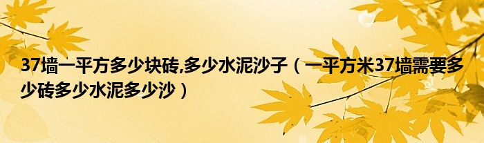 37墙一平方多少块砖,多少水泥沙子(一平方米37墙需要多少砖多少水泥多少沙)
