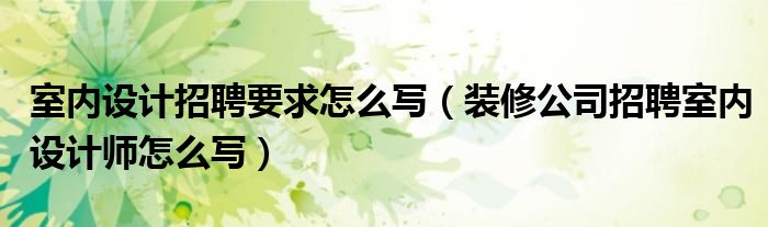 室内设计招聘要求怎么写(装修公司招聘室内设计师怎么写)