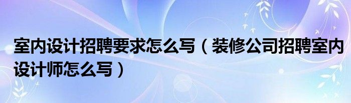 室内设计招聘要求怎么写(装修公司招聘室内设计师怎么写)