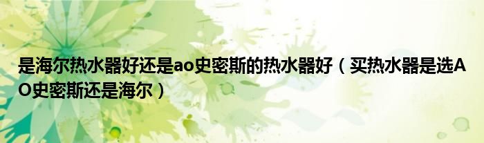 导读 大家好,小编慧慧来为大家解答以上的问题。是海尔热水器好还是ao史密斯的热水器好,买热水器是选AO史密斯还是海尔很多人还不知道,现在让我