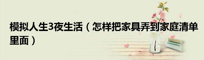 模拟人生3夜生活(怎样把家具弄到家庭清单里面)