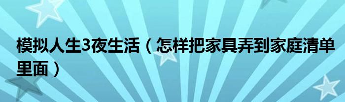 模拟人生3夜生活(怎样把家具弄到家庭清单里面)