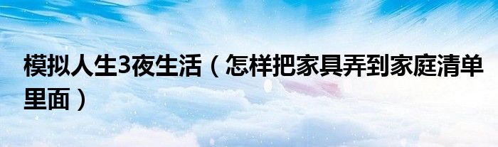 模拟人生3夜生活(怎样把家具弄到家庭清单里面)