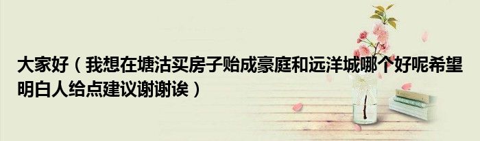 大家好(我想在塘沽买房子贻成豪庭和远洋城哪个好呢希望明白人给点建议谢谢诶)