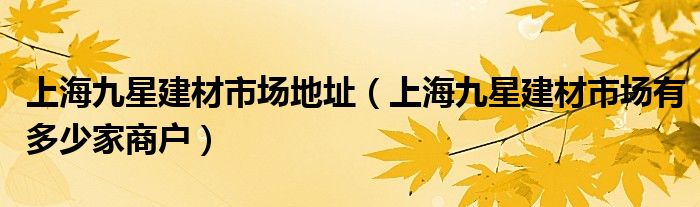 上海九星建材市场地址(上海九星建材市场有多少家商户)