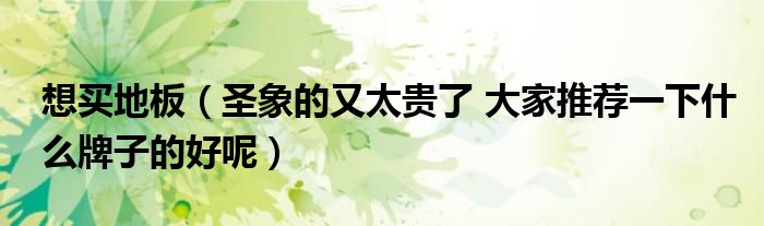 导读 大家好,小编慧慧来为大家解答以上的问题。想买地板,圣象的又太贵了 大家推荐一下什么牌子的好呢很多人还不知道,现在让我们一起来看看吧