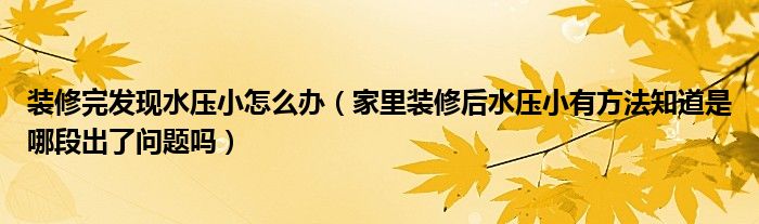 装修完发现水压小怎么办(家里装修后水压小有方法知道是哪段出了问题吗)