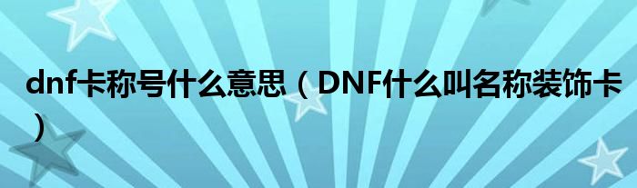 dnf卡称号什么意思(DNF什么叫名称装饰卡)