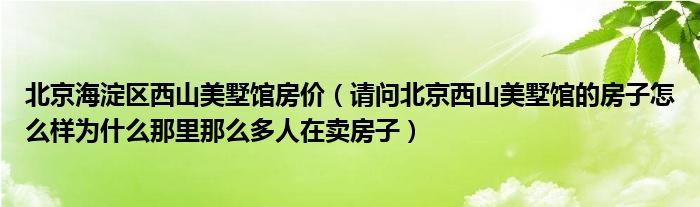 北京海淀区西山美墅馆房价(请问北京西山美墅馆的房子怎么样为什么那里那么多人在卖房子)