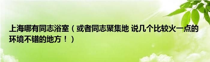 导读 大家好,小编慧慧来为大家解答以上的问题。上海哪有同志浴室,或者同志聚集地 说几个比较火一点的 环境不错的地方!很多人还不知道,现在