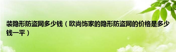 导读 大家好,小编慧慧来为大家解答以上的问题。装隐形防盗网多少钱,欧尚饰家的隐形防盗网的价格是多少钱一平很多人还不知道,现在让我们一起来