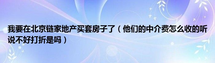 导读 大家好,小编慧慧来为大家解答以上的问题。我要在北京链家地产买套房子了,他们的中介费怎么收的听说不好打折是吗很多人还不知道,现在让我