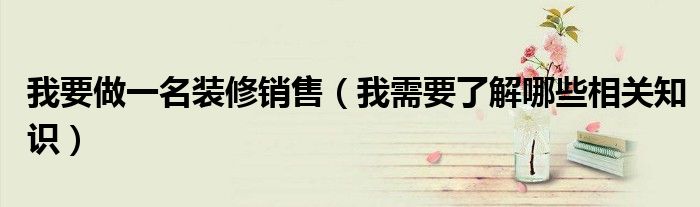 我要做一名装修销售(我需要了解哪些相关知识)