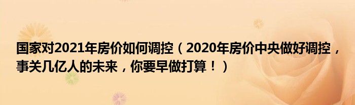 国家对2021年房价如何调控(2020年房价中央做好调控,事关几亿人的未来,你要早做打算!)
