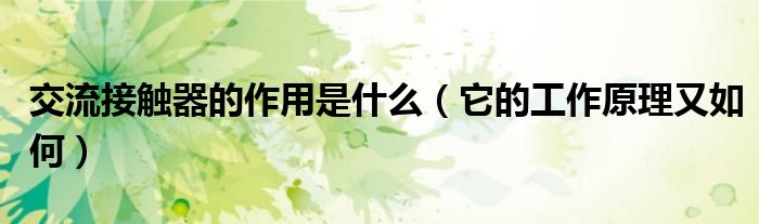 总的来说,交流接触器的作用就是保护电路,能允许很大的电流通过。交流接触器的继电器带有过流或接地保护功能,当打雷之后,线路上有雷电时,它就会切断负荷电源,来保护电路。我们经常在打雷天,遇到跳闸的情况,就是因为这个道理。