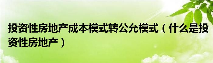 投资性房地产成本模式转公允模式(什么是投资性房地产)