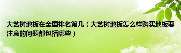 大艺树地板在全国排名第几(大艺树地板怎么样购买地板要注意的问题都包括哪些)