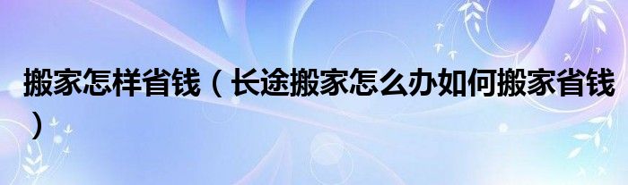 搬家怎样省钱(长途搬家怎么办如何搬家省钱)