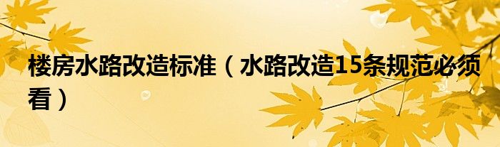 楼房水路改造标准(水路改造15条规范必须看)