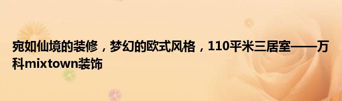 宛如仙境的装修,梦幻的欧式风格,110平米三居室——万科mixtown装饰