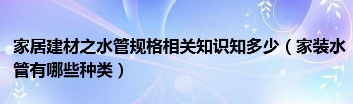 大家好,今天乐乐来为大家解答以上问题。家居建材之水管规格相关知识知多少,家装水管有哪些种类很多人还不知道,现在让我们一起来看看吧!