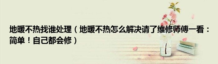 地暖不热找谁处理(地暖不热怎么解决请了维修师傅一看:简单!自己都会修)