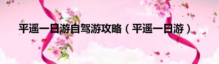 导读 大家好,今天小六子来为大家解答以下的问题,关于平遥一日游自驾游攻略,平遥一日游这个很多人还不知道,现在让我们一起来看看吧!1、其实你