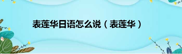 大家好,今天小六子来为大家解答以下的问题,关于表莲华日语怎么说,表莲华这个很多人还不知道,现在让我们一起来看看吧!