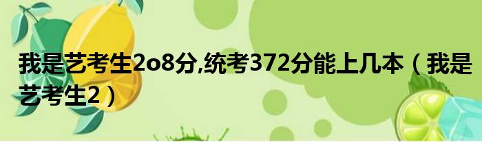 导读 大家好,今天小六子来为大家解答以下的问题,关于我是艺考生2o8分,统考372分能上几本,我是艺考生2这个很多人还不知道,现在让我们一起来看
