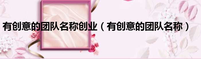 导读 大家好,今天小六子来为大家解答以下的问题,关于有创意的团队名称创业,有创意的团队名称这个很多人还不知道,现在让我们一起来看看吧!1、