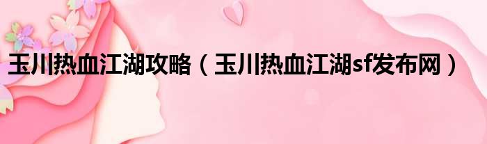 导读 大家好,今天小六子来为大家解答以下的问题,关于玉川热血江湖攻略,玉川热血江湖sf发布网这个很多人还不知道,现在让我们一起来看看吧!1、