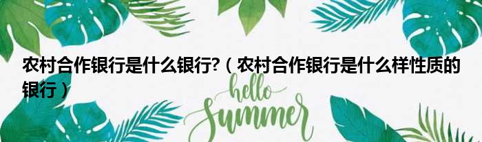 农村合作银行是什么银行?(农村合作银行是什么样性质的银行)