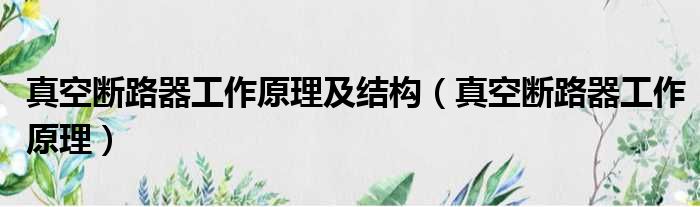 导读 大家好,今天小六子来为大家解答以下的问题,关于真空断路器工作原理及结构,真空断路器工作原理这个很多人还不知道,现在让我们一起来看看
