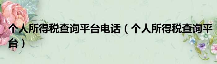 导读 大家好,今天小六子来为大家解答以下的问题,关于个人所得税查询平台电话,个人所得税查询平台这个很多人还不知道,现在让我们一起来看看吧