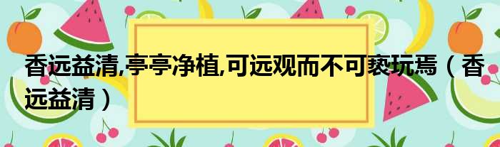 香远益清,亭亭净植,可远观而不可亵玩焉(香远益清)