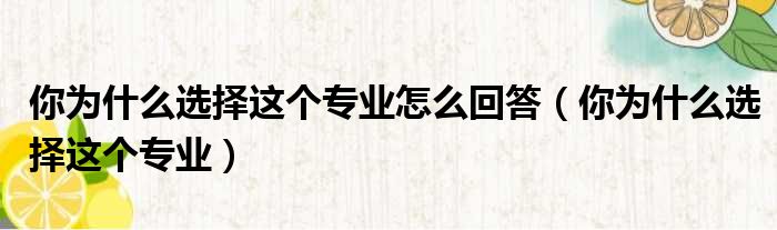 你为什么选择这个专业怎么回答(你为什么选择这个专业)