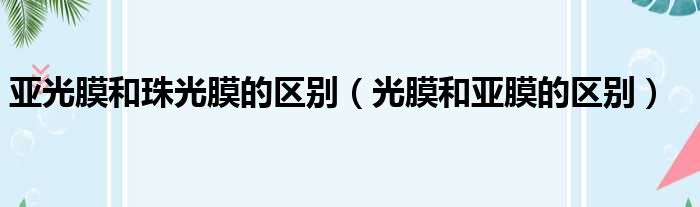 亚光膜和珠光膜的区别(光膜和亚膜的区别)